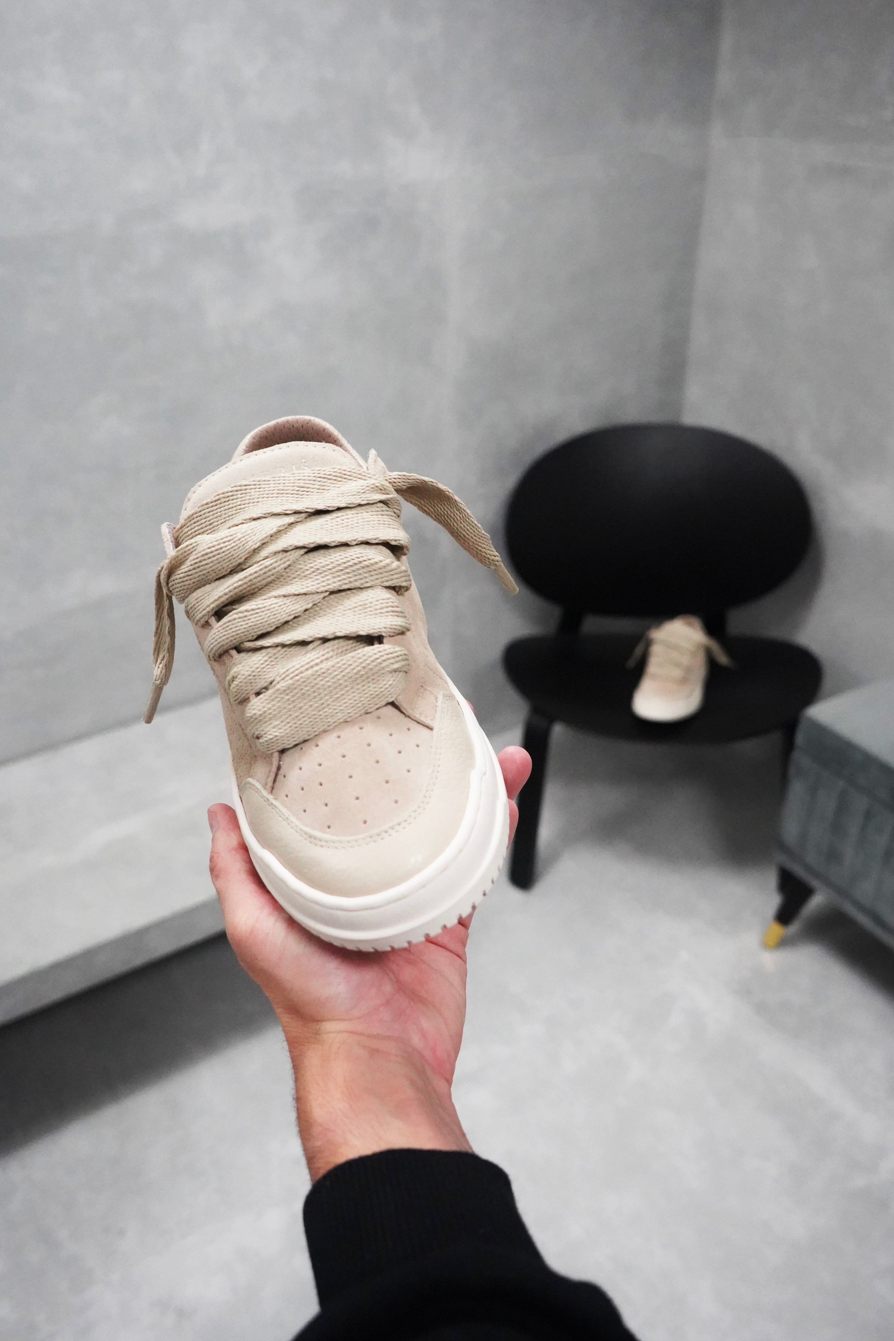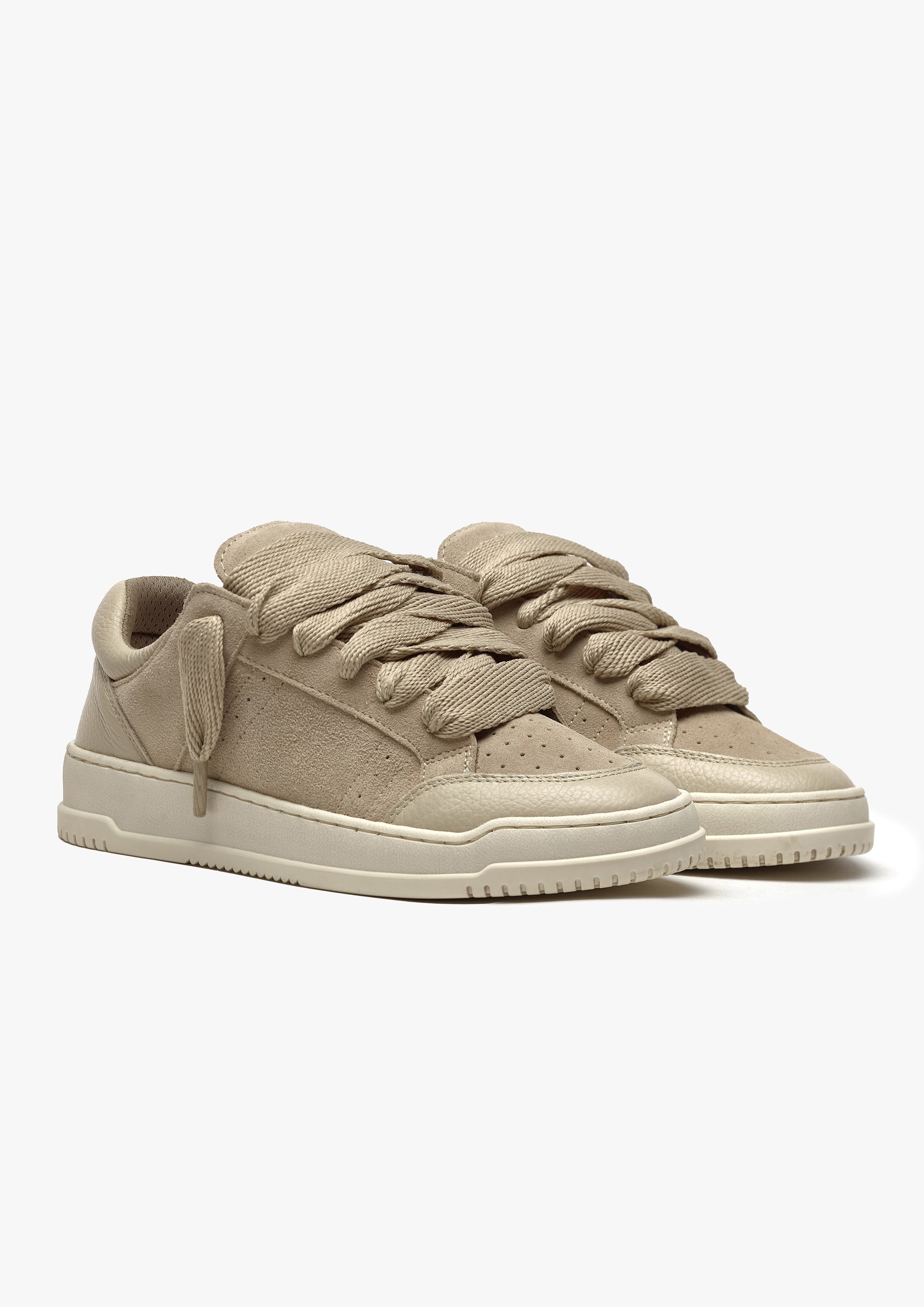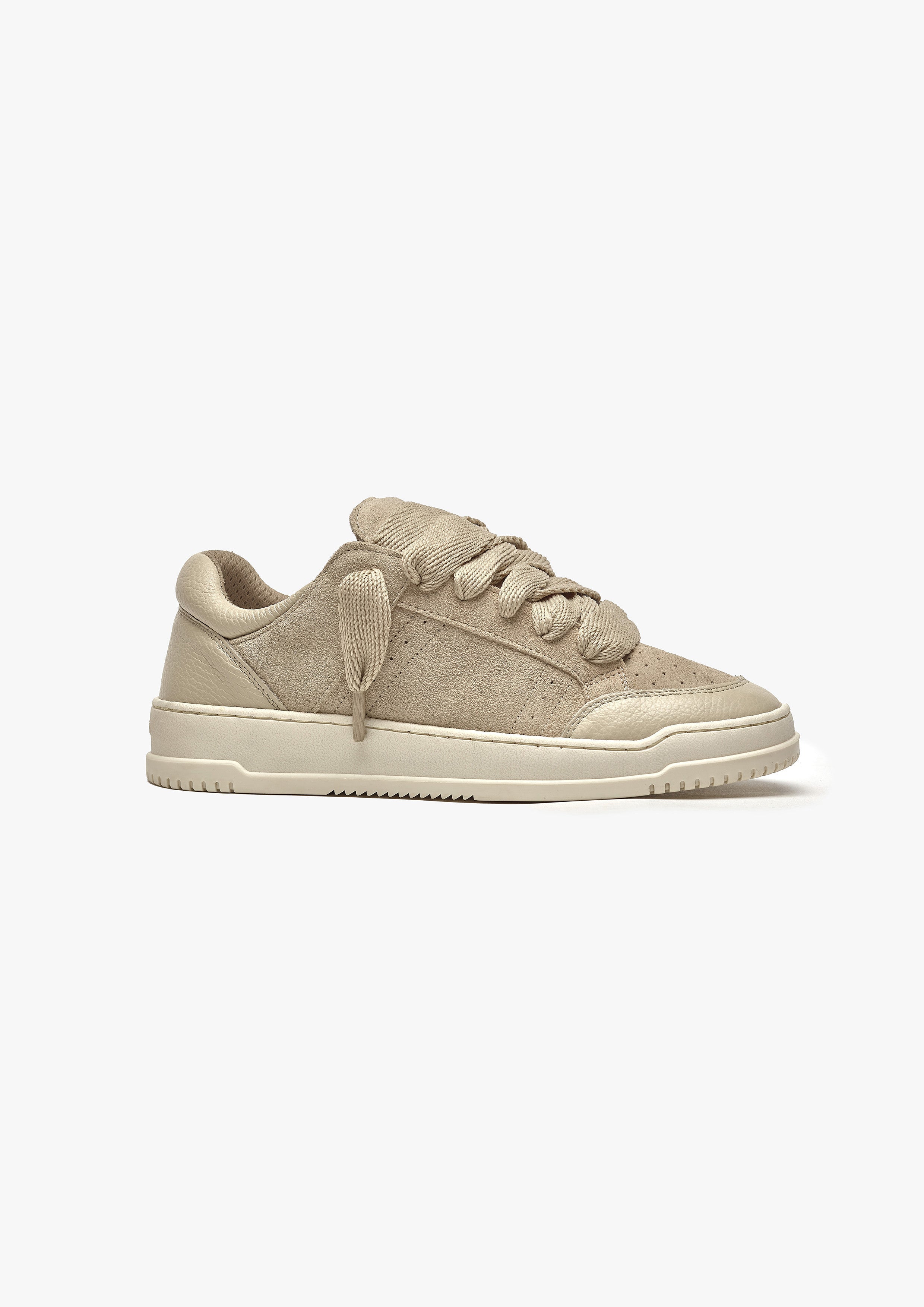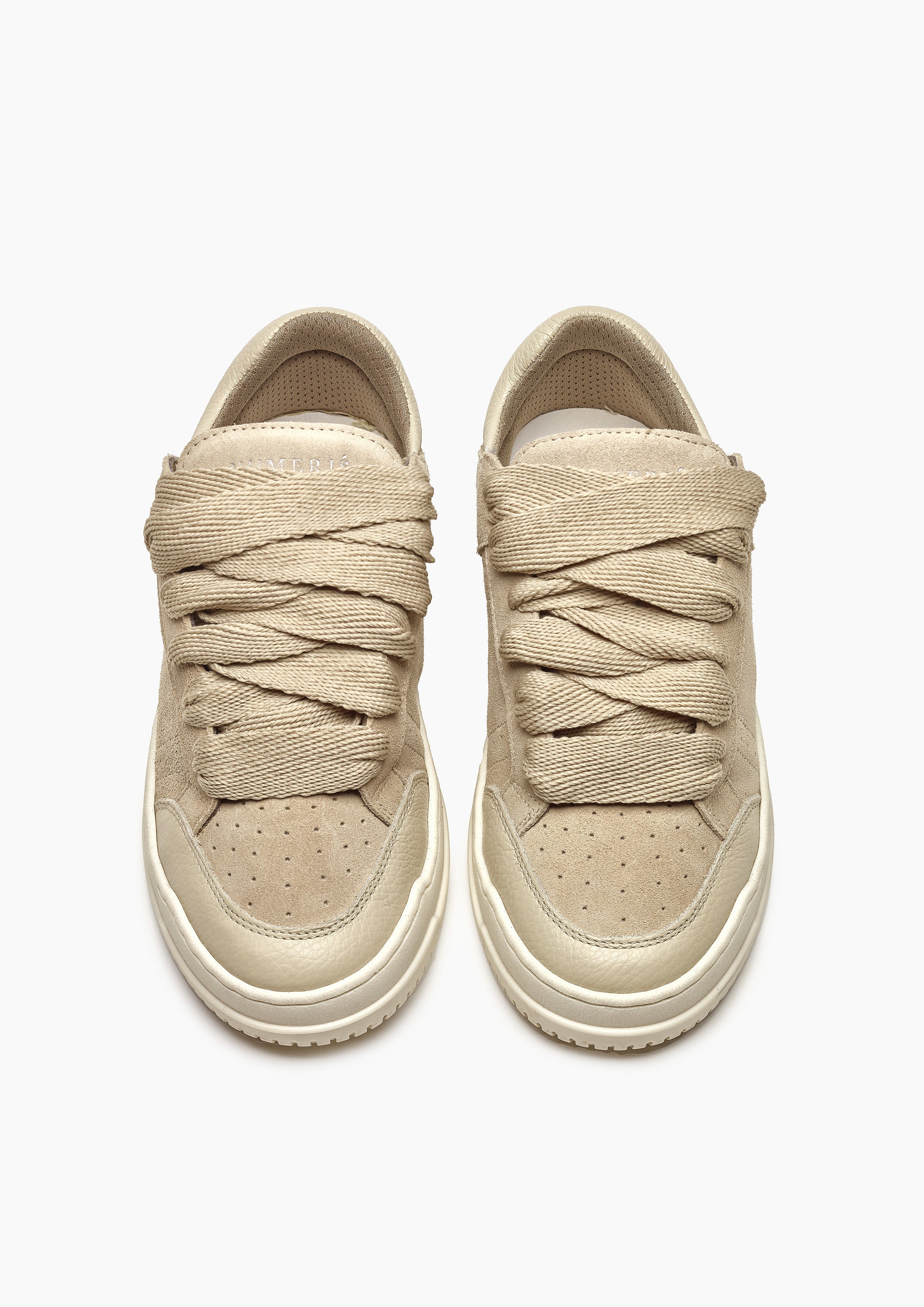 La sneaker Arena Chunky allie luxe quotidien et esthétique sportive. Le coloris Oat présente une tige entièrement en cuir blanc agrémentée de lacets blancs de 20 mm. L'intérieur de la basket est doté d'une doublure de col offrant un confort inégalé. La tige repose parfaitement sur notre semelle personnalisée bicolore grise et blanche. La semelle elle-même présente le logo Numeriś en relief à l'arrière et est gravée sur la semelle inférieure.