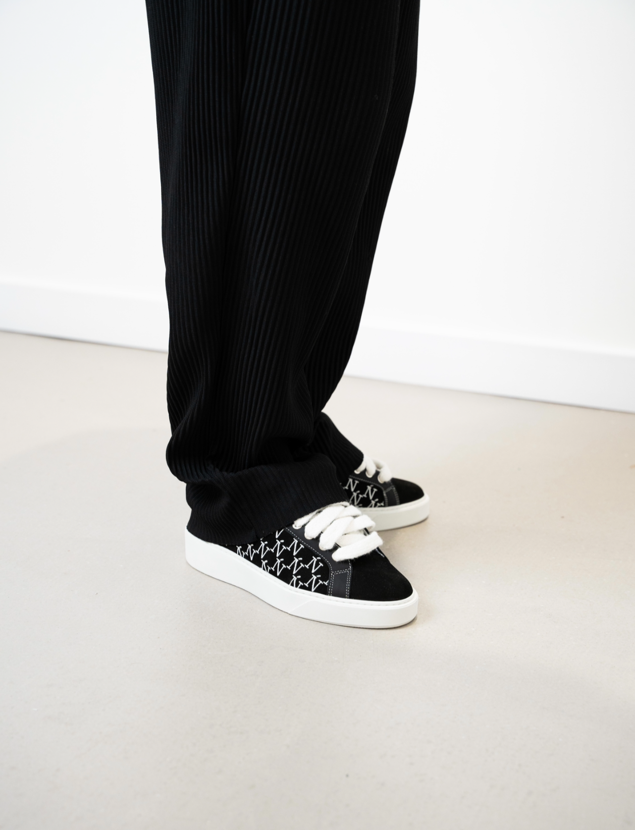 La couleur Onyx présente un nubuck noir italien, des lacets blancs en mohair de 10 mm, des panneaux latéraux en nubuck noir et un cuir sur mesure renforcé par du TPU courant le long de la tige des œillets. Ceux-ci sont accompagnés de notre élégant logo monogramme Ń brodé à la main. L'intérieur de la chaussure présente une doublure de col noire offrant un confort inégalé. La tige repose parfaitement sur notre toute nouvelle semelle en caoutchouc complexe, exclusivement conçue pour Sigńet. Notre logo argenté distinctif est positionné sur la languette.