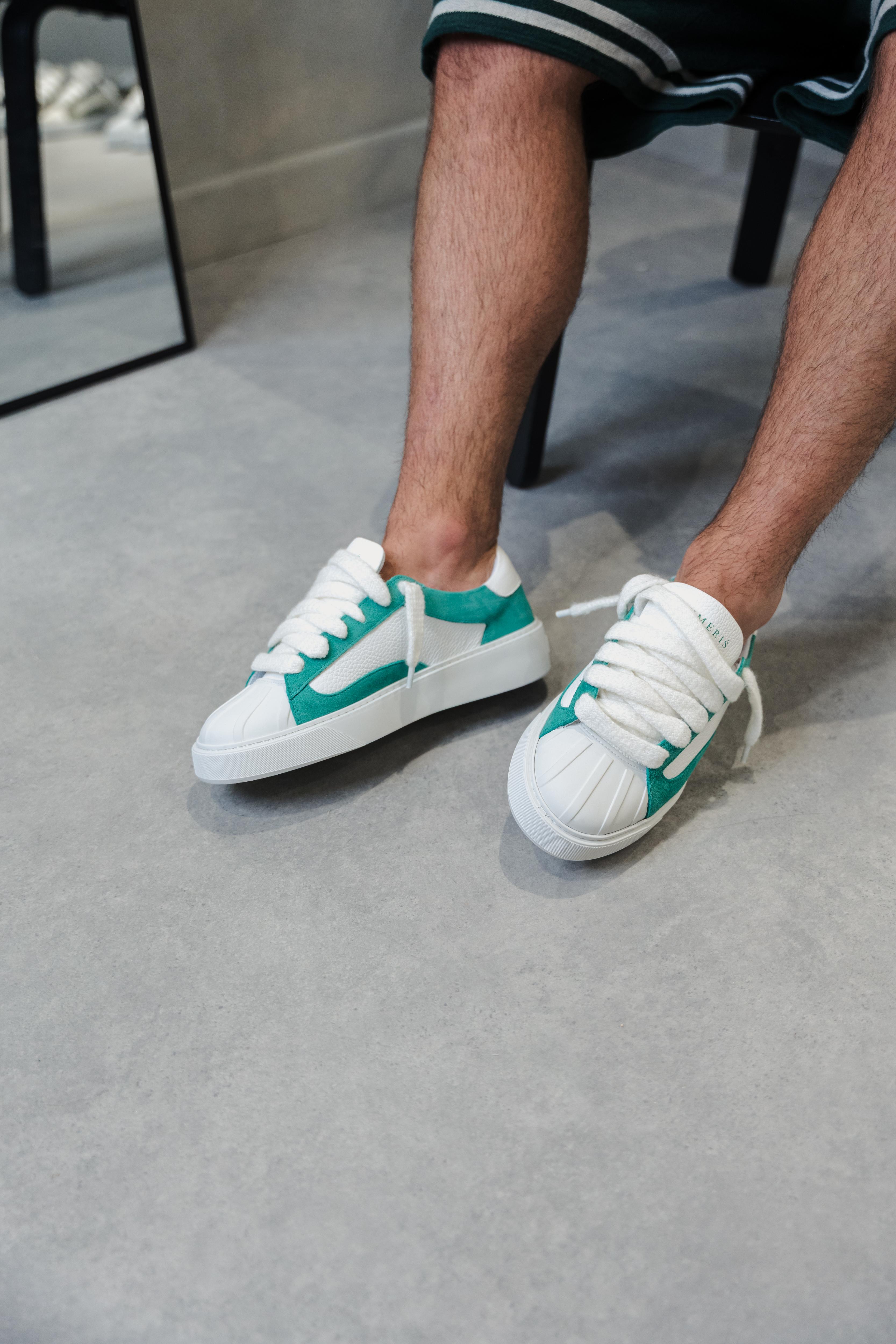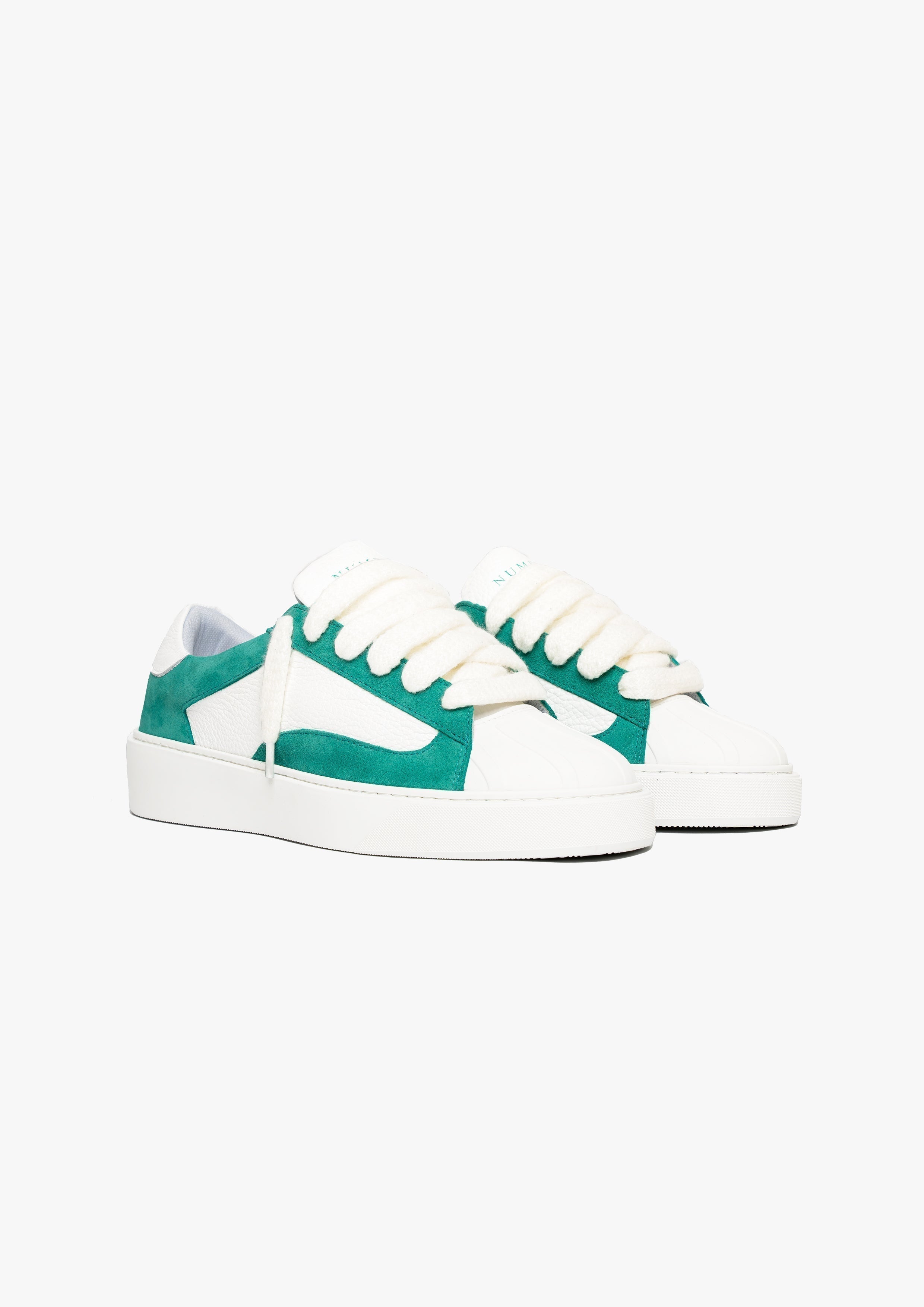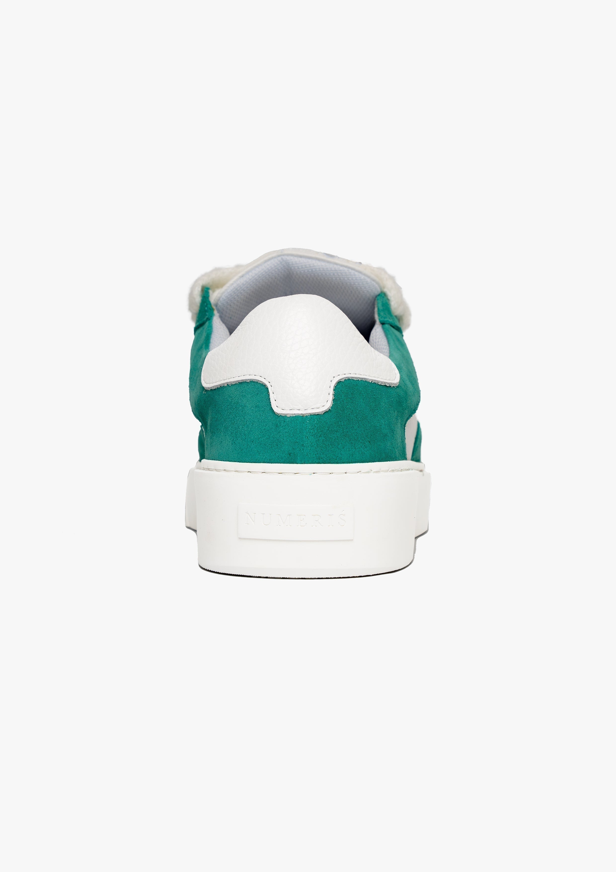 La couleur Sarcelle présente un mélange de Cuirs et suède italiens. Avec du mohair de 10 mm de large laces, chaque paire est douce au toucher et légèrement texturée. La marque Numeris est positionné le long de la languette, créant une esthétique épurée. Tout cela repose sur notre semelle conçue sur mesure, développé exclusivement pour l'Eclipse - pour soutenir l'orteil en coque de caoutchouc.
