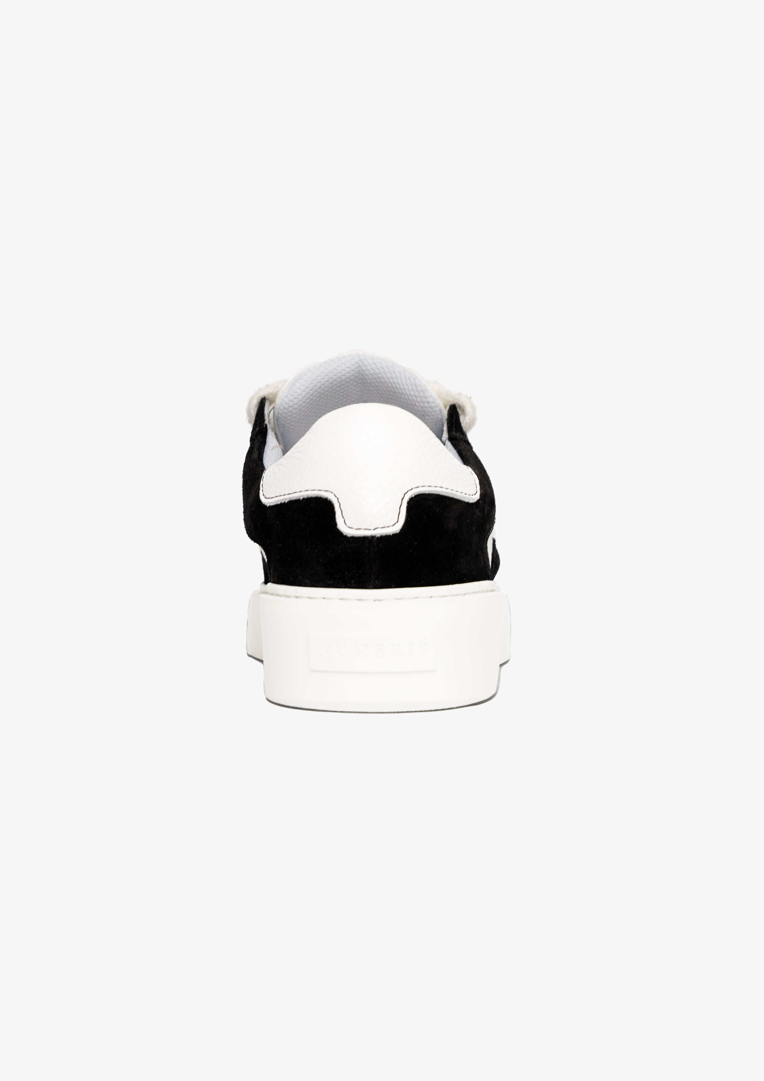 La couleur Jet présente un mélange de Cuirs et suède italiens. Avec du mohair de 10 mm de large lacets, chaque paire est douce au toucher et légèrement texturée. La marque Numeris est positionné le long de la languette, créant une esthétique épurée. Tout cela repose sur notre semelle conçue sur mesure, développé exclusivement pour l'Eclipse - pour soutenir l'orteil en coque de caoutchouc.