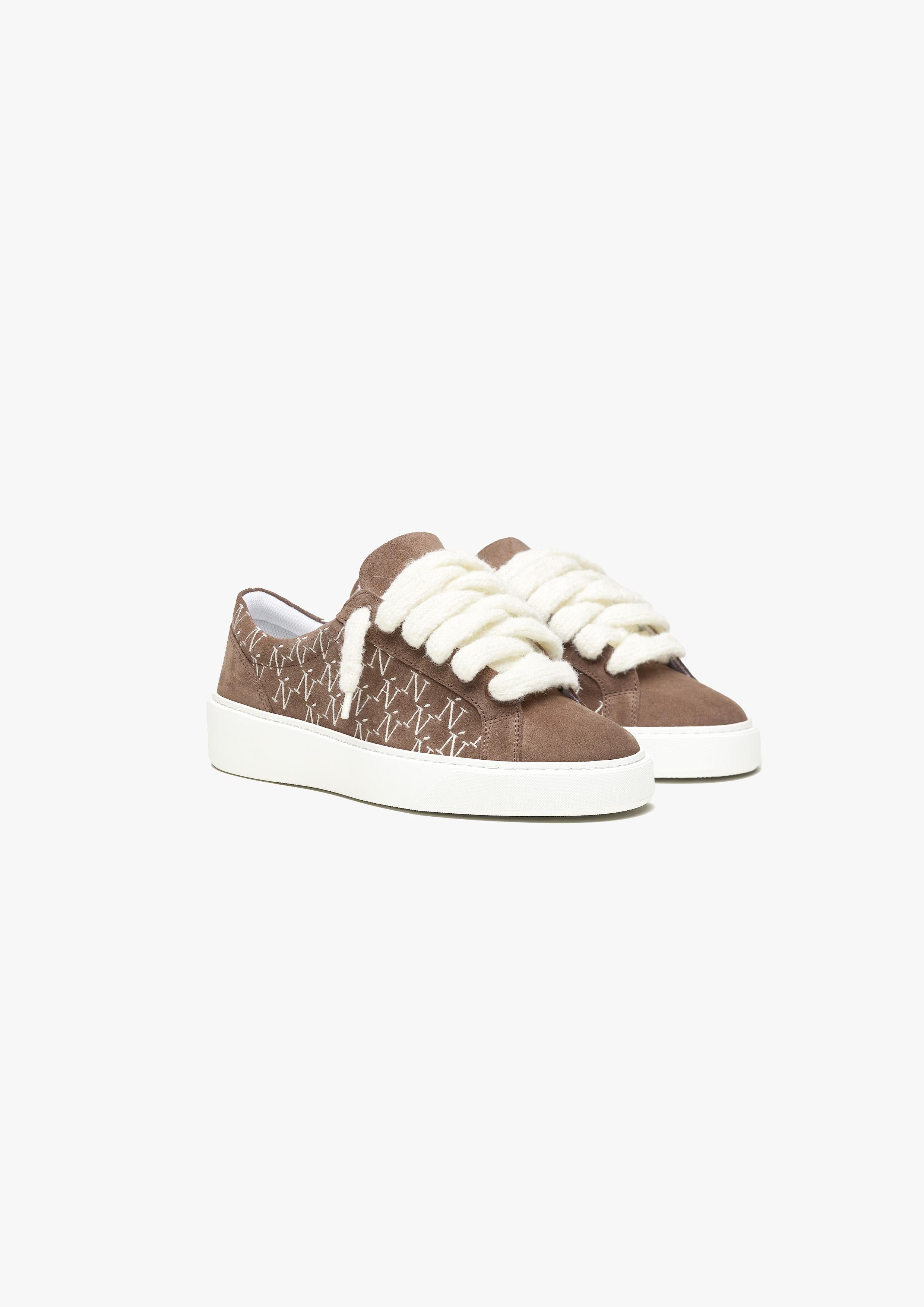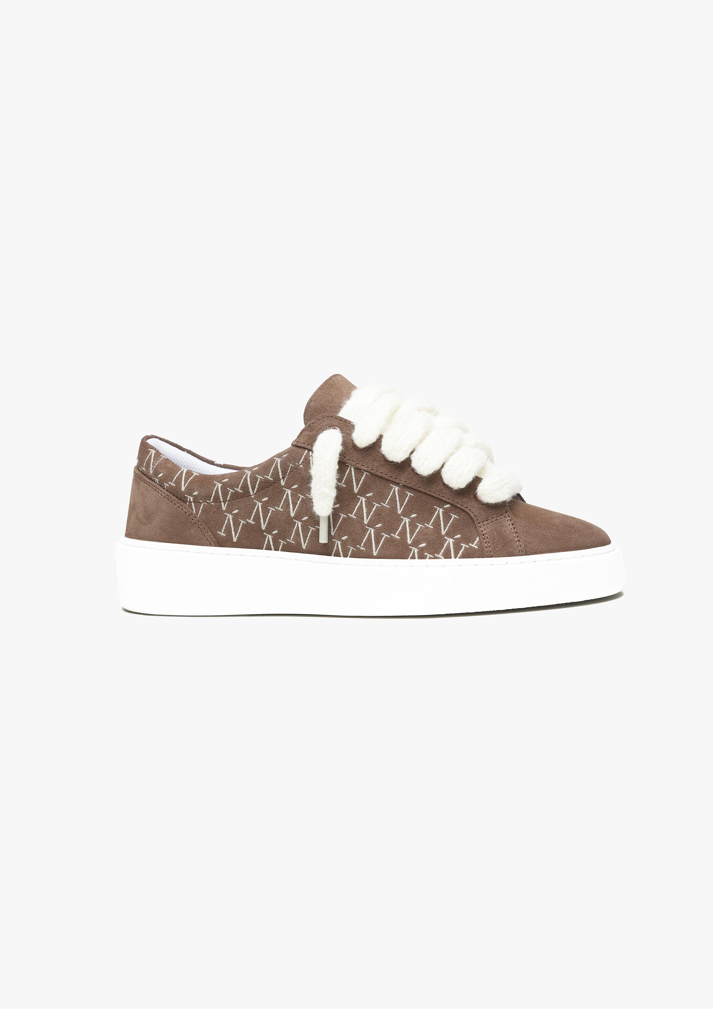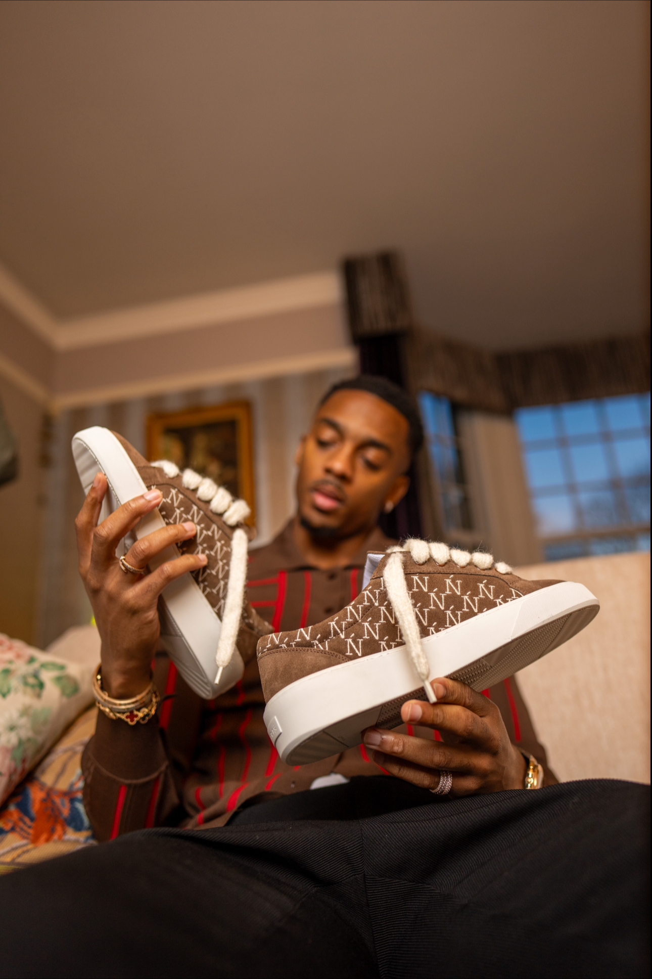 La sneaker Sigńet est dotée d'un daim brun clair italien, de lacets blancs en mohair de 10 mm et de panneaux latéraux assortis, accompagnés de notre élégant logo monogramme Ń brodé à la main. L'intérieur de la sneaker présente une doublure de col blanche offrant un confort inégalé. La tige repose parfaitement sur notre toute nouvelle semelle en caoutchouc complexe, exclusivement fabriquée pour Sigńet. Notre logo distinct en argent est positionné sur la languette.
