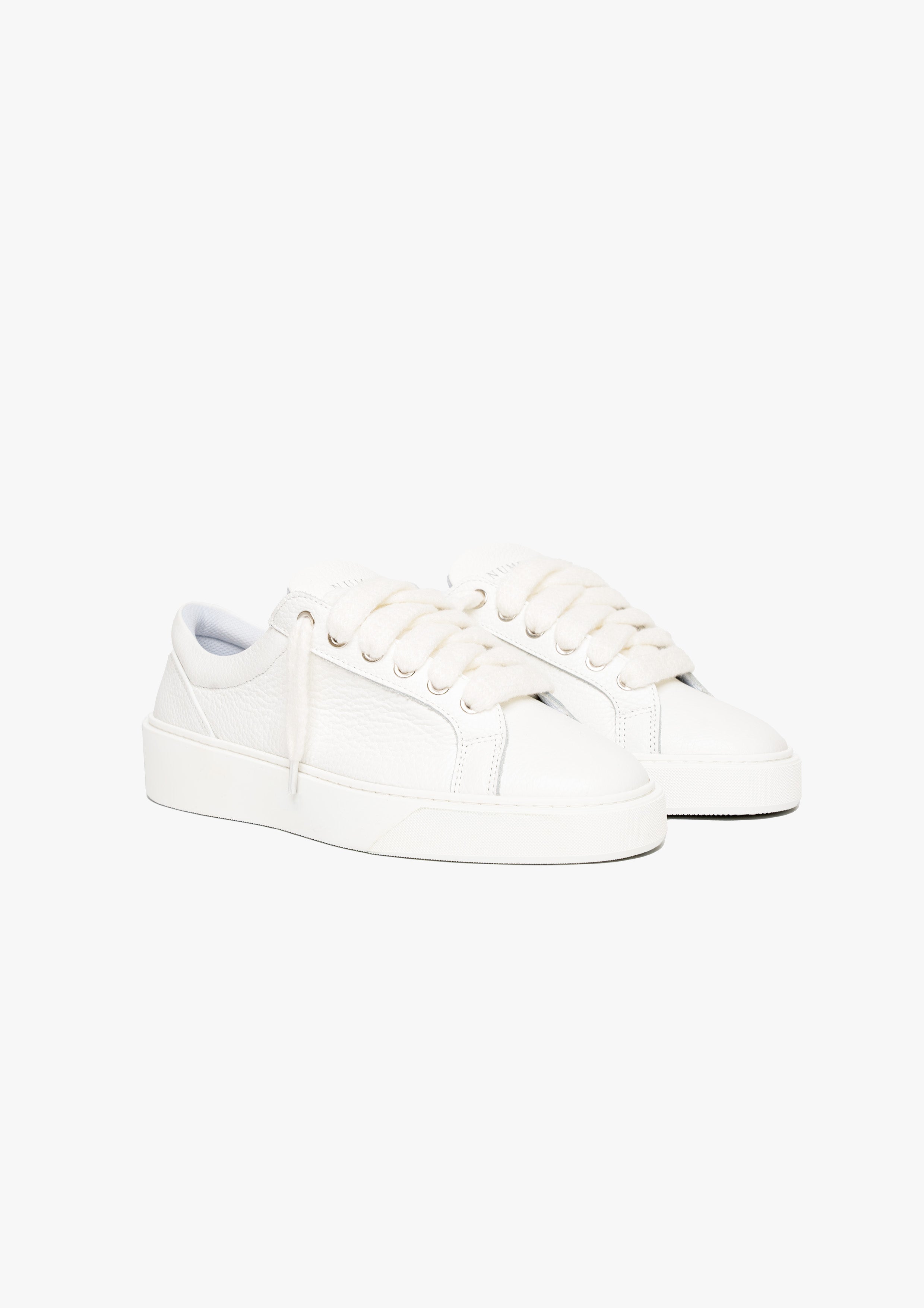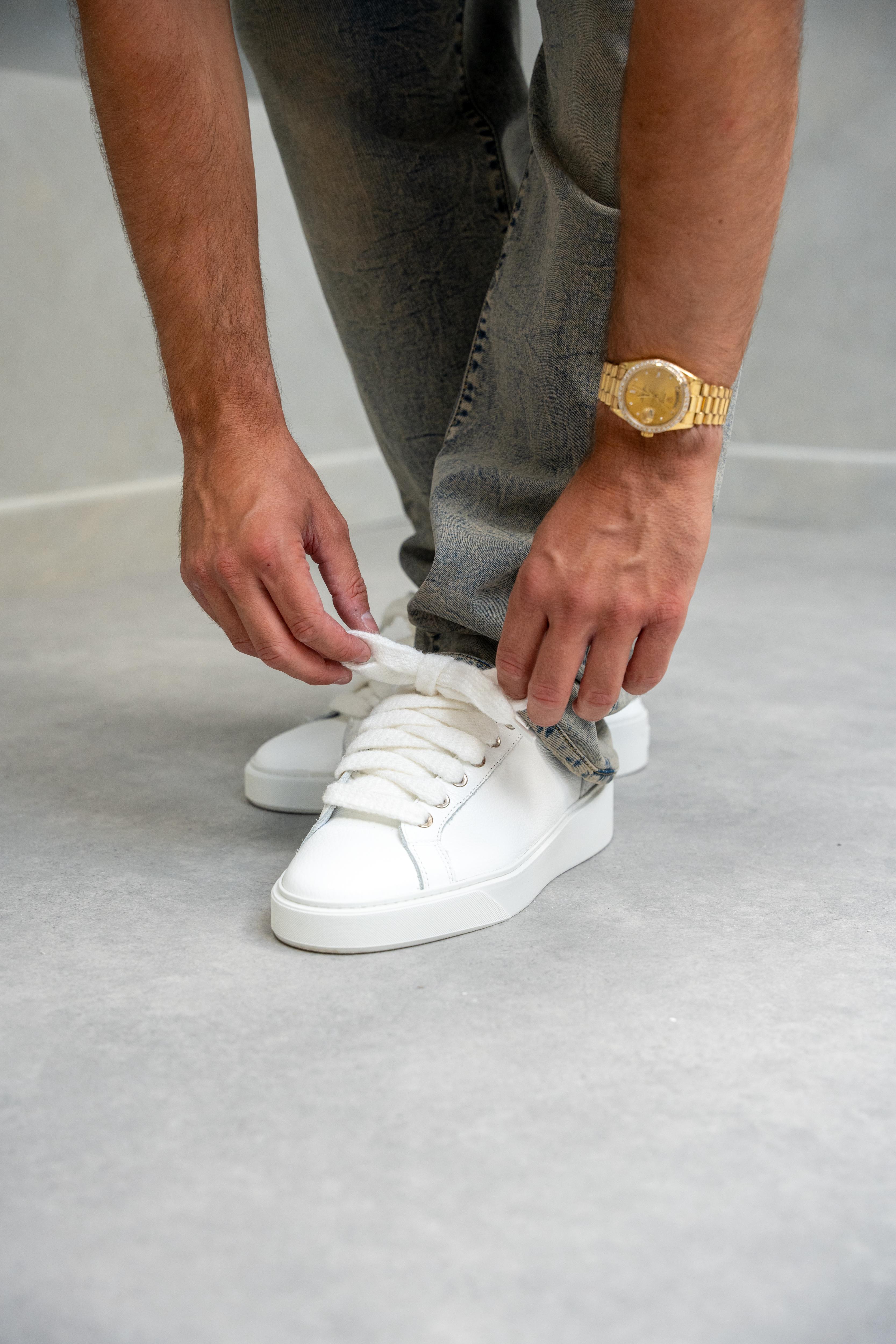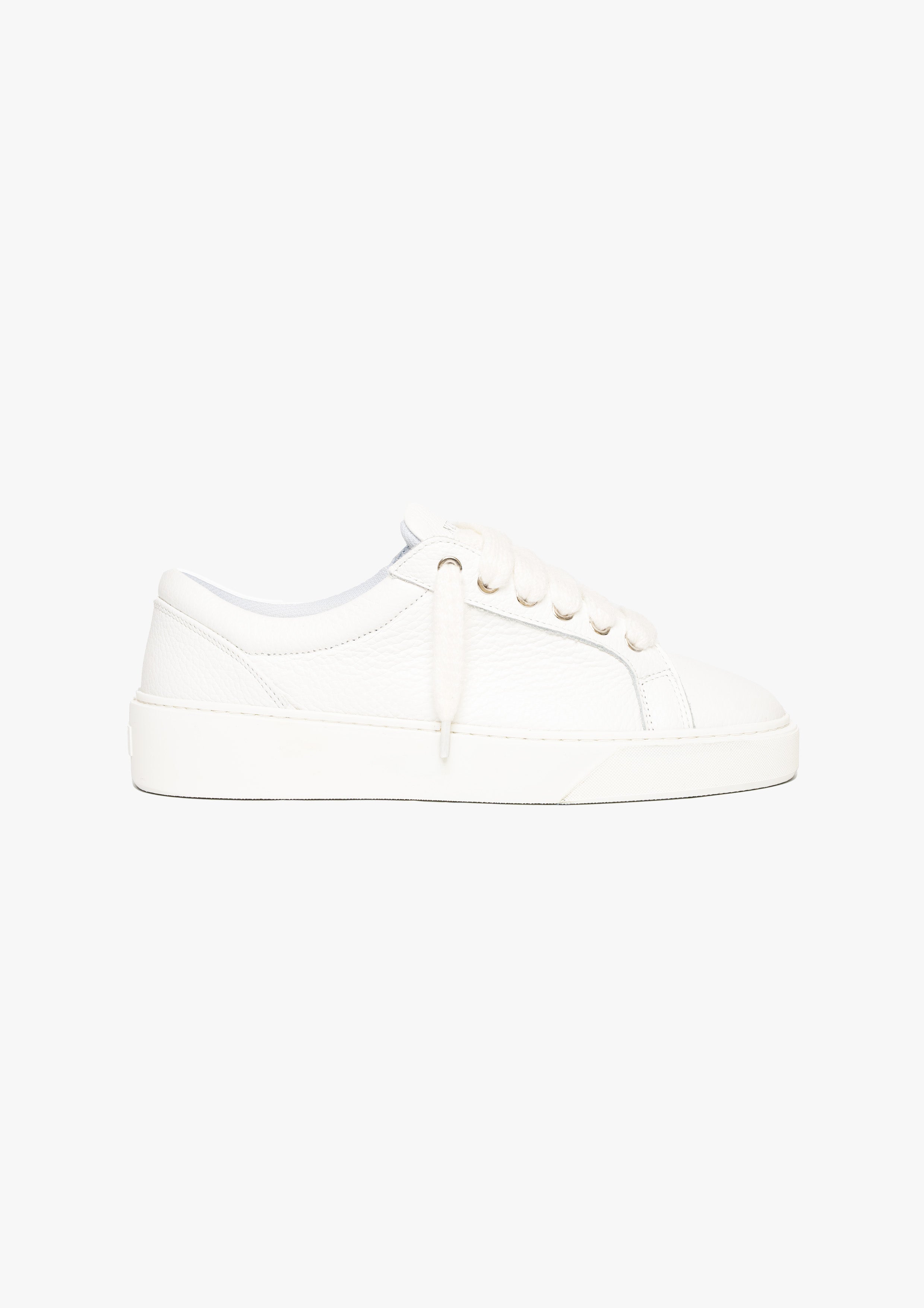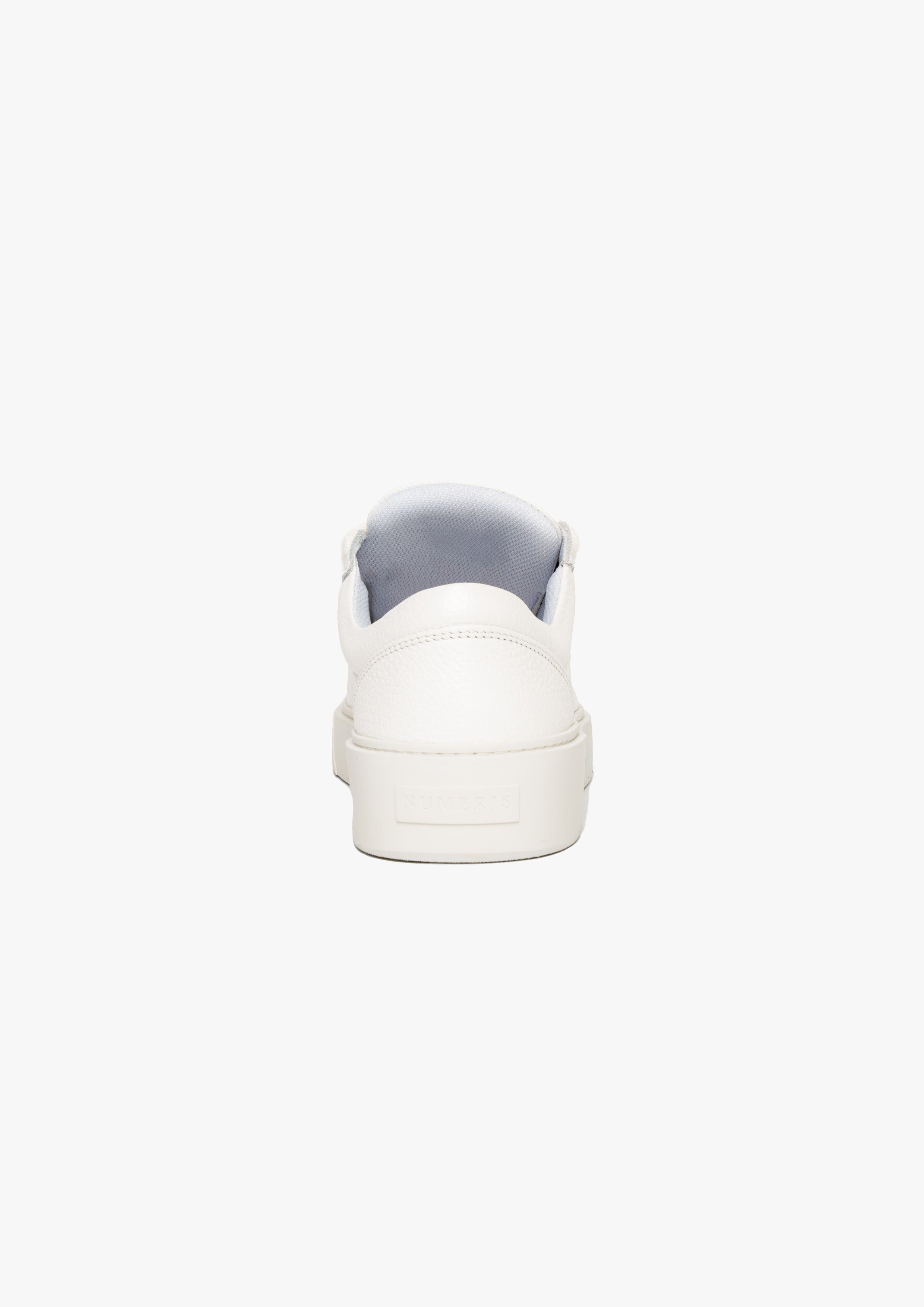 La sneaker Sigńet présente une tige en cuir grainé doux espagnol entièrement blanche, accompagnée de Lacets blancs en mohair de 10 mm. L'intérieur de la basket est doté d'une doublure de col blanche offrant un confort inégalé. La tige repose parfaitement sur notre toute nouvelle semelle en caoutchouc gomme complexe, fabriquée exclusivement pour Sigńet. Notre logo argenté distinctif est positionné sur la languette.
