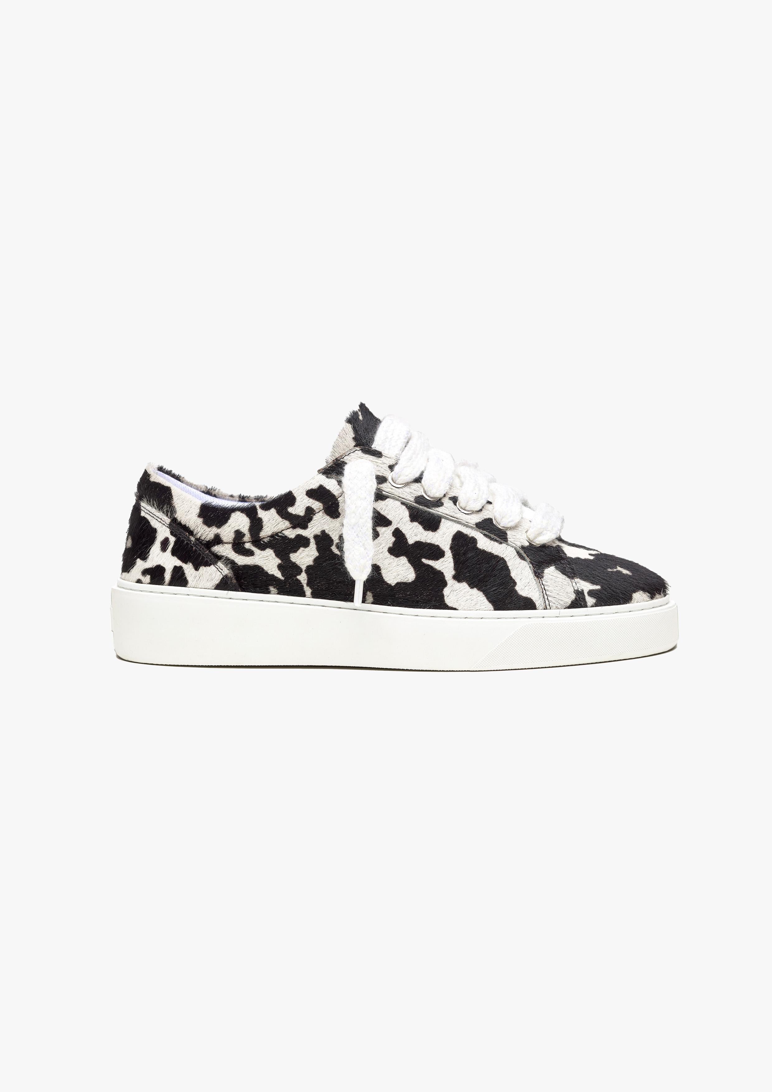 La sneaker Sigńet présente un cuir poney intégral avec un imprimé dalmatien et des lacets en mohair blanc de 10 mm. L'intérieur de la sneaker est doté d'une doublure de col blanche offrant un confort inégalé. La tige repose parfaitement sur notre toute nouvelle semelle en caoutchouc complexe, conçue exclusivement pour Sigńet. Notre logo argenté distinctif est positionné sur la languette.